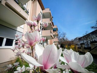 Unser Haus liegt in zentraler Lage im Stadtteil Herdern. Ein angrenzender Park mit altem Baumbestand kann mitbenutzt werden. Eine Haltestelle der Verkehrs AG, Fachärzte, Apotheken, Banken sowie diverse Geschäfte und der Botanische Garten befinden sich in unmittelbarer Nähe.